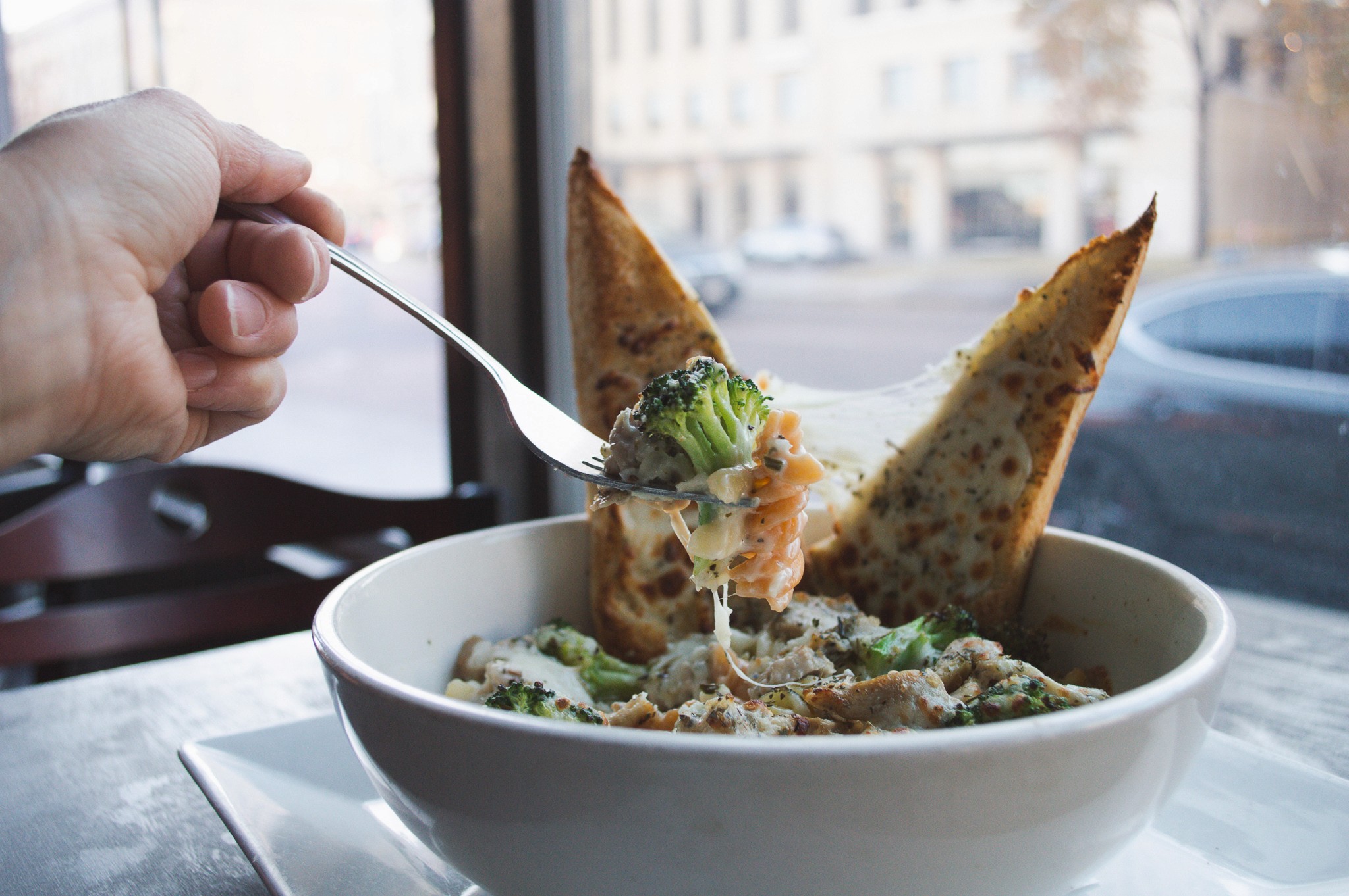 roasted chicken, broccoli, house-made alfredo sauce, rotini noodles, cheesy bread